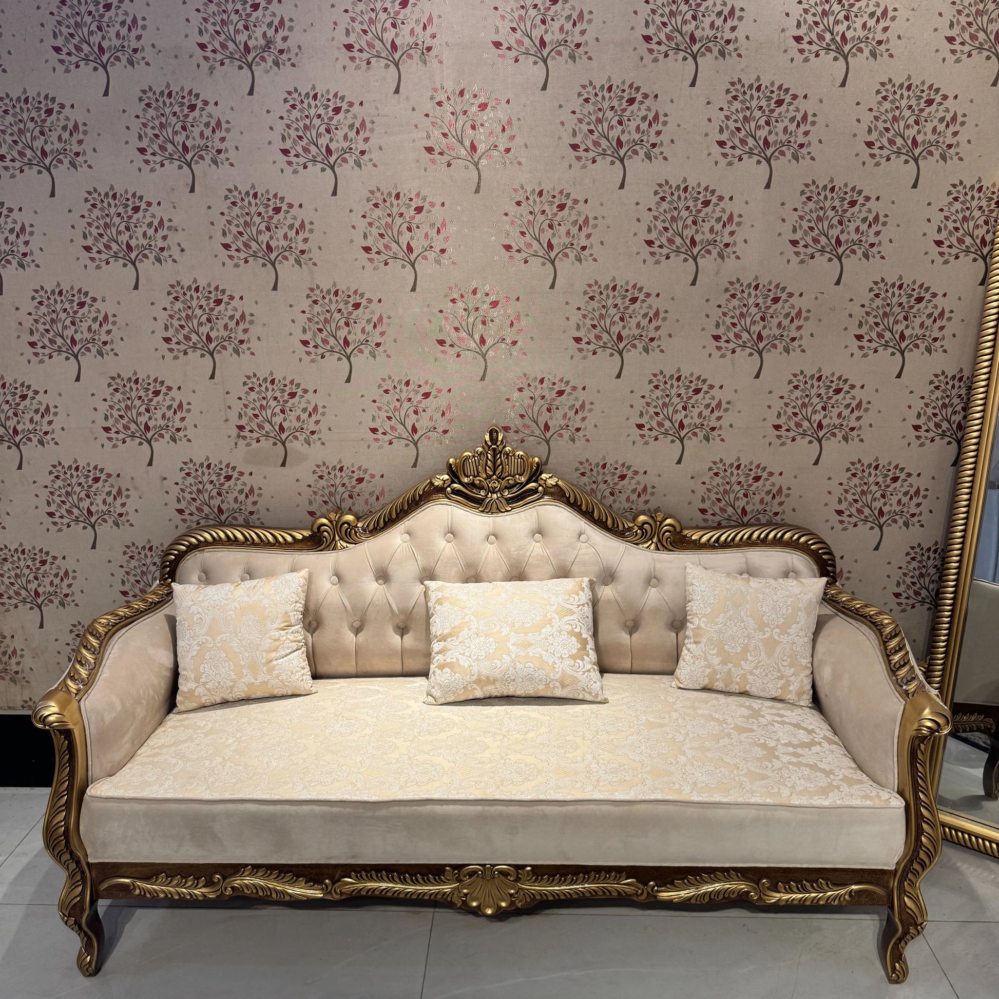 The Chenone 2 Sofa Set is designed to be the perfect blend of sophistication and relaxation. Crafted with solid wood and finished in a deco paint with silver and dark brown antique tones, it exudes luxury at every glance. Upholstered in plush velvet fabric and layered with MoltyFoam and polyester ball fiber filling, this set ensures both durability and supreme comfort. Complete with 11 soft cushions, it creates a cozy yet stylish atmosphere for your living space.